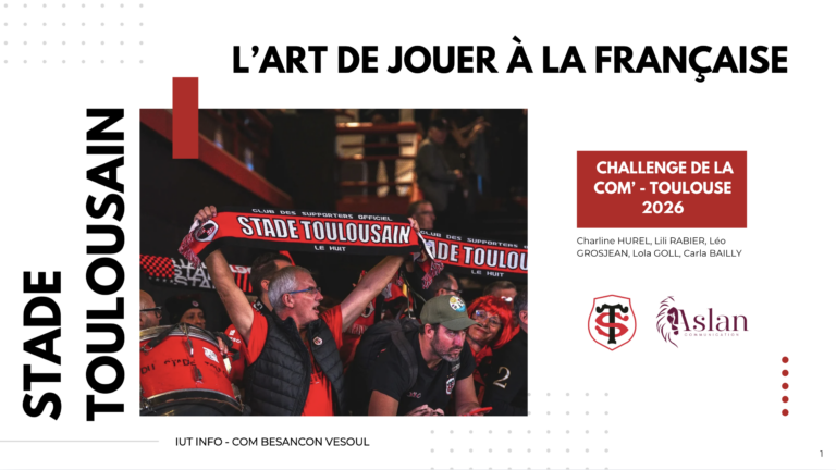 Le troisième challenge était d’une toute autre ampleur puisqu’il s’agissait d’un challenge national, mené autour du Stade Toulousain. Pendant plusieurs semaines, notre équipe de cinq étudiants a travaillé sur une problématique stratégique ambitieuse, dans un contexte mêlant concurrence accrue et professionnalisation du rugby.